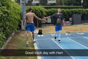 体育资讯8月14日讯 今天,霍姆格伦更新个人社媒,晒出了与哈尔滕施泰因合练的照片。